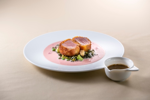 豚ヒレのコトレッタ~桜色のヴィテロトンナートソースに春野菜のヴィニャローラを添えて~